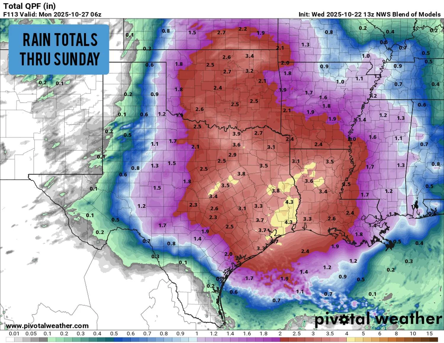Ночью движения штормов будут направлены на юг и восток, к Остину и Сан-Антонио. Риск появления крупных градин остается низким, но обильные дожди могут усилить угрозу наводнения для многих регионов. От вечера пятницы до раннего утра субботы большая часть территории, включая Сан-Антонио, Остин, Хилл-Кантри и Даллас-Форт Уорт, находится под уровнем 2 из 4 по риску чрезмерного дождя, что соответствует вероятности возникновения внезапного наводнения в 15% на расстоянии 40 км от любого пункта.