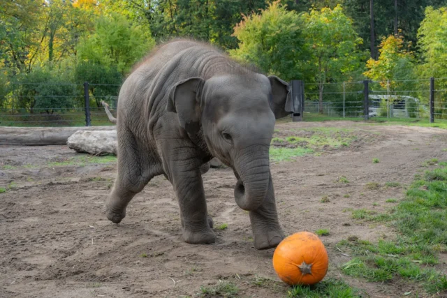 В своей последней традиционной осенней акции зоопарк Орегона демонстрировал уникальные моменты жизни своих подопечных, среди которых особенно выделялась восемьмесячная азиатская слониха по имени Тула-Ту. Несмотря на свой вес в 351,5 килограмма, что сопоставимо с весом небольшого тыквы, она продемонстрировала свои способности, катая мини-тыкву, предоставленную ей обработчиками, как футбольный мяч.